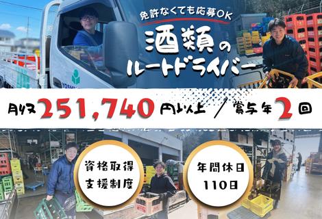 【正社員のお仕事!】2t車にて酒類・飲料のルート配送ドライバー!【免許なしでも応募できる】駐車場完備!